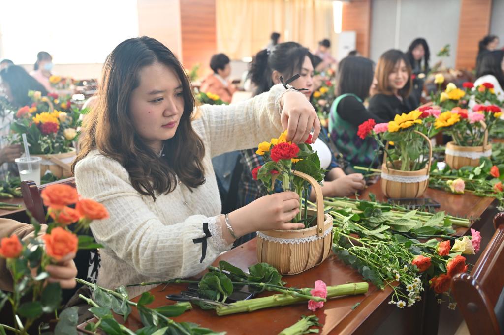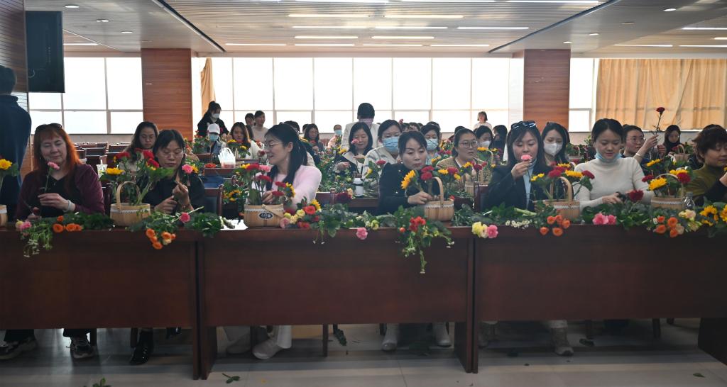 为庆祝第113个“三八”国际劳动妇女节,丰富广大女教职工的业余文化生活,3月8日下午,由米兰官网工会组织的“花香悦生活·礼赞新时代”主题花艺活动在餐饮楼五楼举行。100多名女教职工参加了此次活动。