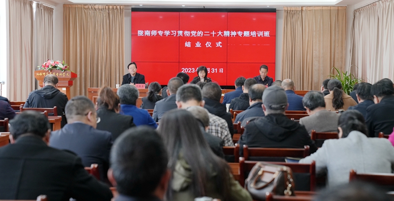 紧扣主题,培训新颖出彩。以解读阐释党的二十大精神为主线,围绕深入学习党的二十大报告,邀请兰州大学马克思主义学院博士生导师王学俭教授、甘肃省委党校魏向君教授,天水师范学院硕士生导师吴原教授,陇南市纪委副书记、监委副主任张雷雨,全国人大代表梁倩娟、米兰官网马克思主义学院丁汝雄副教授进行全方位多角度辅导授课,分别从不同角度对党的二十大精神和全国两会精神进行了专题解读辅导。立足升本工作和干部培训需求,结合“三抓三促”行动相关要求,举办了《以中国式现代化全面推进中华民族伟大复兴》《党的教育方针政策与新时代教师队伍建设》《新时代新征程坚持和发展中国特色社会主义的政治宣言和行动纲领》《学习贯彻党的二十大精神,深刻认识全面从严治党永远在路上,党的自我革命永远在路上》《全国2023年两会精神解读》等7场专题报告会,将党的二十大提出的一系列重大战略部署与学校升本发展的工作实际紧密联系起来进行分析阐释,引导培训学员深刻理解和把握党的二十大精神,谋划和推进工作,做到理论与实践相结合。