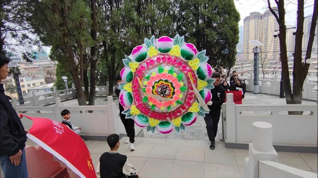 在烈士陵园英雄纪念碑前,学生代表向革命烈士敬献了花圈,并整理挽联。全体同学追悼默哀。先锋队干部代表讲述了本次扫墓活动的意义和红军在陇南的英雄事迹,详细介绍了徽成两康战役相关情况,表达了对革命先烈的无尽哀思,进一步强化爱国主义教育,更好传承红色文化。随后,全体同学们在党旗下整齐列队,全体队员进行庄严宣誓。最后,同学们清理了陵园垃圾,并且瞻仰了纪念碑和参观了烈士战役纪念馆,缅怀革命先烈,弘扬爱国精神。