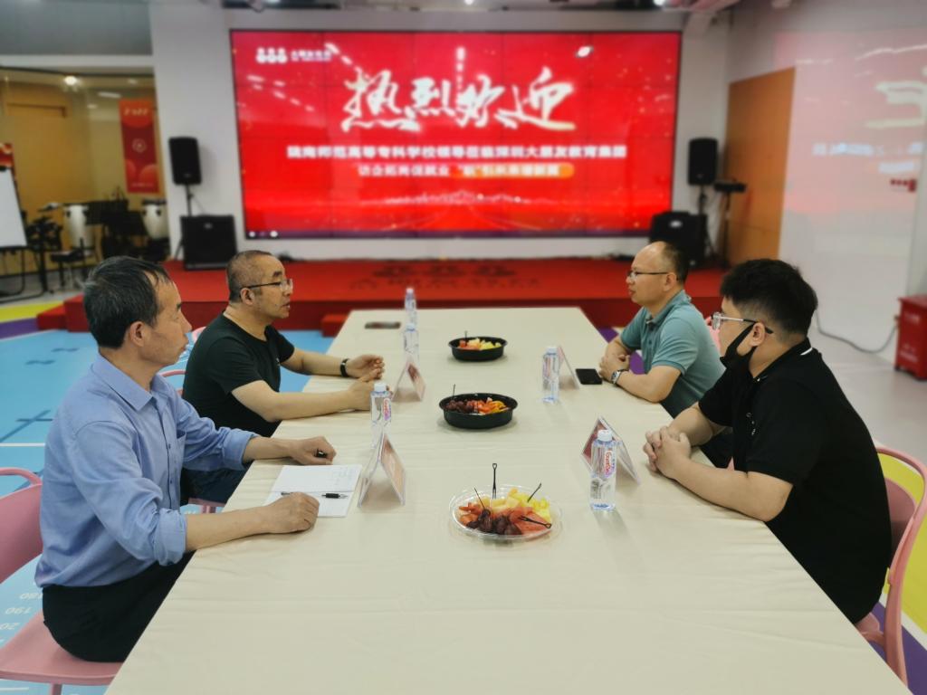 余学军一行先后走访智乐达教育投资服务(深圳)有限公司、深圳市雏鹰教育投资发展有限公司、深圳市大唐明升企业管理咨询有限公司、深圳市大朋友教育科技有限公司、深圳市龙华区新园学校、深圳市福田区汇龙幼儿园、十有八九(深圳)文化传媒有限公司等7家用人单位,实地考察各单位教育教学场地和设施设备,了解教学活动开展情况,并与各单位负责人座谈交流。他详细了解了各单位招生和业务经营现状、当地民办教育行业发展现状,以及小学和幼儿园教师需求情况,并向各单位介绍了米兰官网专业设置和人才培养情况。他希望校企双方充分发挥各自优势,深化毕业生实习与就业的校企协同合作,创新合作机制,让产教融合更接地气,让米兰官网更多毕业生有更多机会融入到深圳市教育行业发展中来。