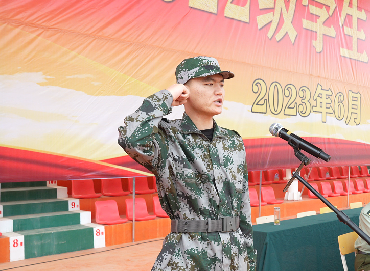 军训教官代表李文龙和参训学生代表王生斌同学宣誓。