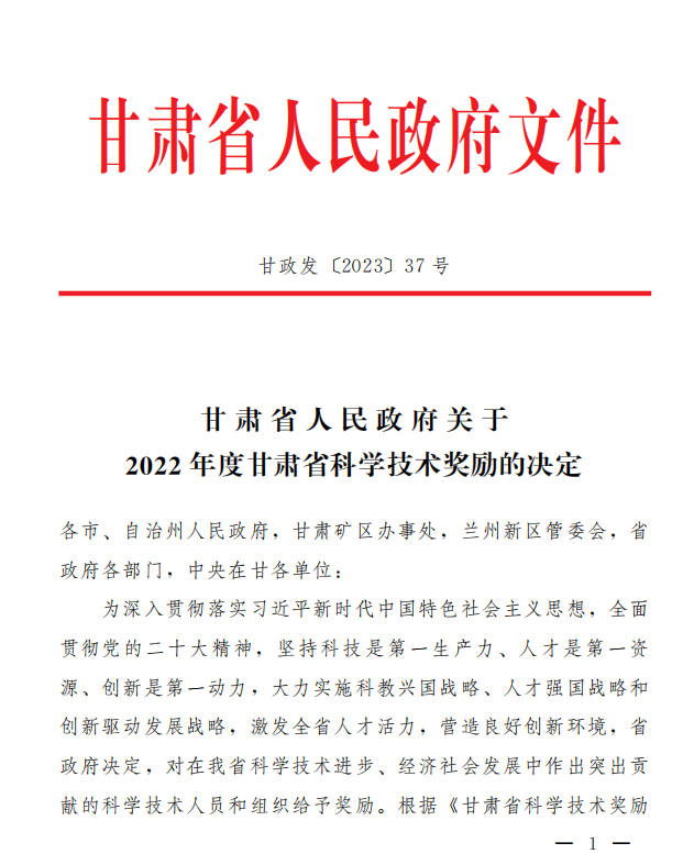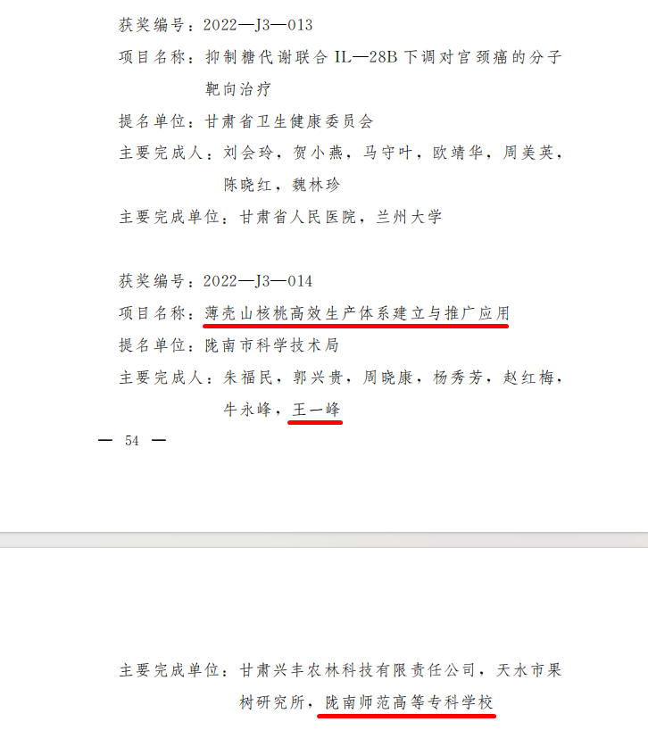 近日,甘肃省人民政府发布《关于2022年度甘肃省科学技术奖励的决定》,对2022年在我省科学技术进步、经济社会发展中作出突出贡献的科学技术人员和组织给予奖励。米兰官网农林技术学院王一峰副教授参与完成的《薄壳山核桃高效生产体系建立与推广应用》成果荣获甘肃省科技进步三等奖(获奖编号:2023-J3-014)。这是米兰官网作为成果完成单位、教学科研成员作为成果主要完成人,首次荣获甘肃省科技进步奖。