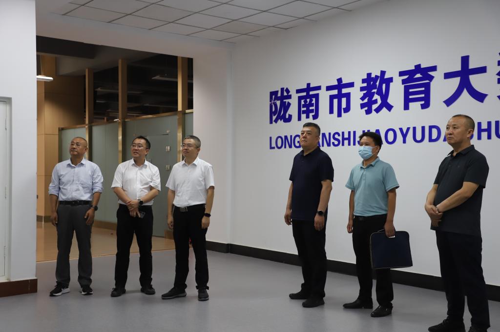 在平台运营展示大厅,张弢详细了解了中国电信陇南分公司陇南市大数据云计算中心平台、陇南智慧教育云平台运营情况。双方就开展党建翼联活动、推进教育信息化建设、打造教育信息化平台、共建网上党建联学会议室全面推进5G、云计算、大数据等新一代信息技术应用,推动学校信息化建设等方面进行了深度交流。