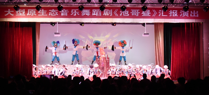 9月26日晚,学校举行原生态音乐舞蹈剧《池哥昼》汇报演出。党委书记张弢,校长李艳红,副校长张建辉,纪委书记、监察专员镡旭东和音乐舞蹈学院全体师生观看了演出。