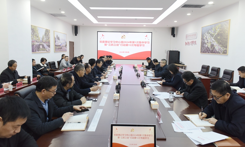 1月9日,学校党委召开理论学习中心组2024年第1次集中学习会暨“三抓三促”行动第12次专题学习会。党委书记张弢主持会议并讲话。党委副书记、校长李艳红,党委副书记石明,党委委员、副校长张建辉、任永峰,党委委员、纪委书记镡旭东出席会议,各职能部门主要负责人,各学院党总支书记、院长参加了会议。