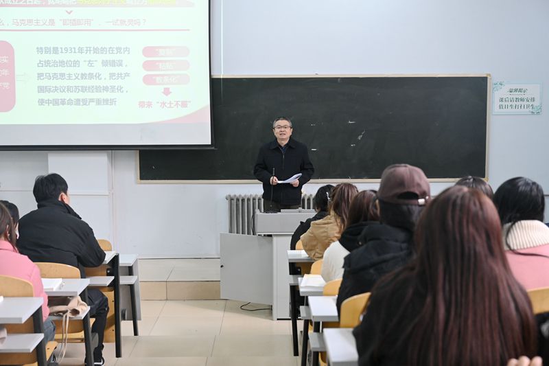 张弢指出,习近平新时代中国特色社会主义思想内涵丰富、博大精深,是我们认识世界、把握规律、追求真理、改造世界、做好各项工作、处理各种矛盾的强大思想武器和方法的根本遵循。思政课作为落实立德树人根本任务的关键课程,教师在授课时要注重方式方法,把道理讲深、讲透、讲活,既要寓马克思主义“道理”于“学理”,又要贯通“思政小课堂”与“社会大课堂”,在彰显中国之路、中国之治、中国之理中,引导学生懂政理、明学理、通事理。他希望同学们要坚定理想信念,吃苦耐劳,朝夕勤奋,兼善求达,认真学习校史校情,继承和发扬学校的优良传统,自觉担当民族复兴的时代大任,为国家建设贡献青春力量。(文图/李 曼)