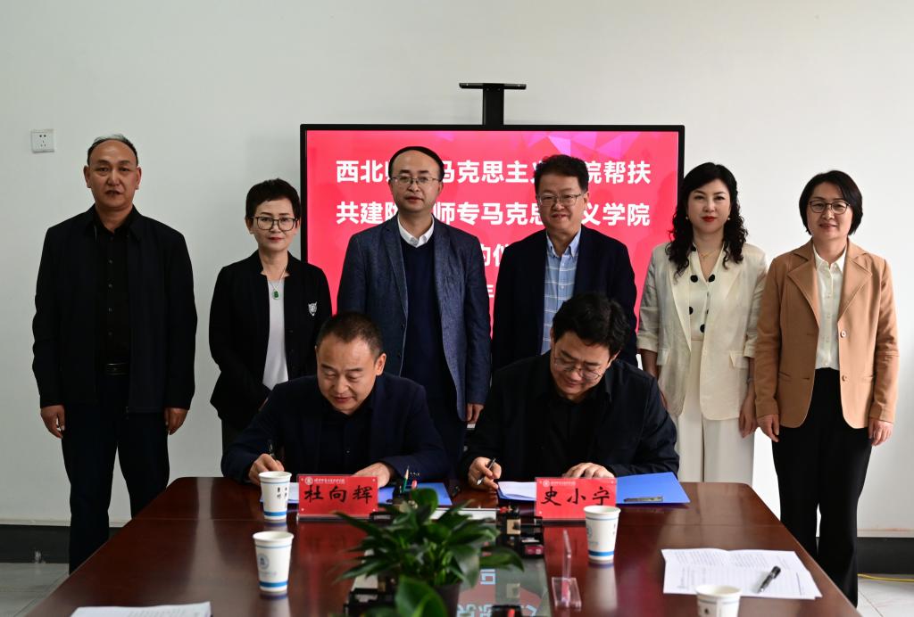 史小宁、杜向辉代表两校马克思主义学院签订了帮扶共建协议。