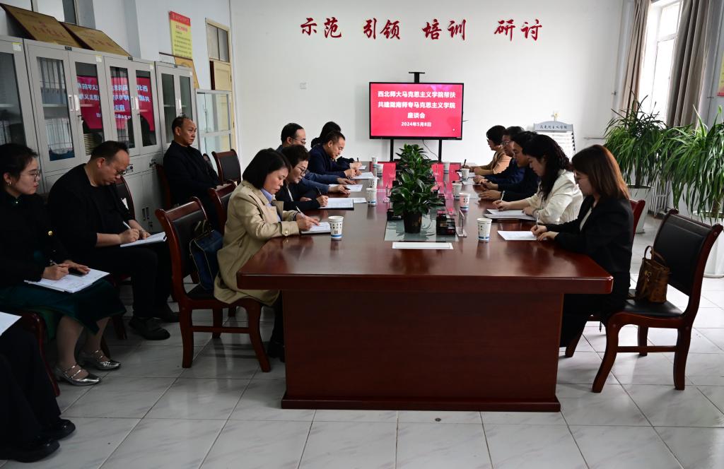 石明对西北师范大学马克思主义学院的到来和帮扶表达了诚挚的欢迎与感谢,全面回顾了西北师大马克思主义学院对口支援米兰官网马克思主义学院建设取得成效,并从学科建设、教育教学质量提升、学术交流、基地共建、思政课教师实践研修、红色文化研学等方面进行了交流,希望西北师范大学马克思主义学院充分发挥首批省级重点马克思主义学院的示范引领作用,形成协同发展的新格局,提升帮扶共建质量和水平,力争取得一批共建成果,务求结对取得实效。