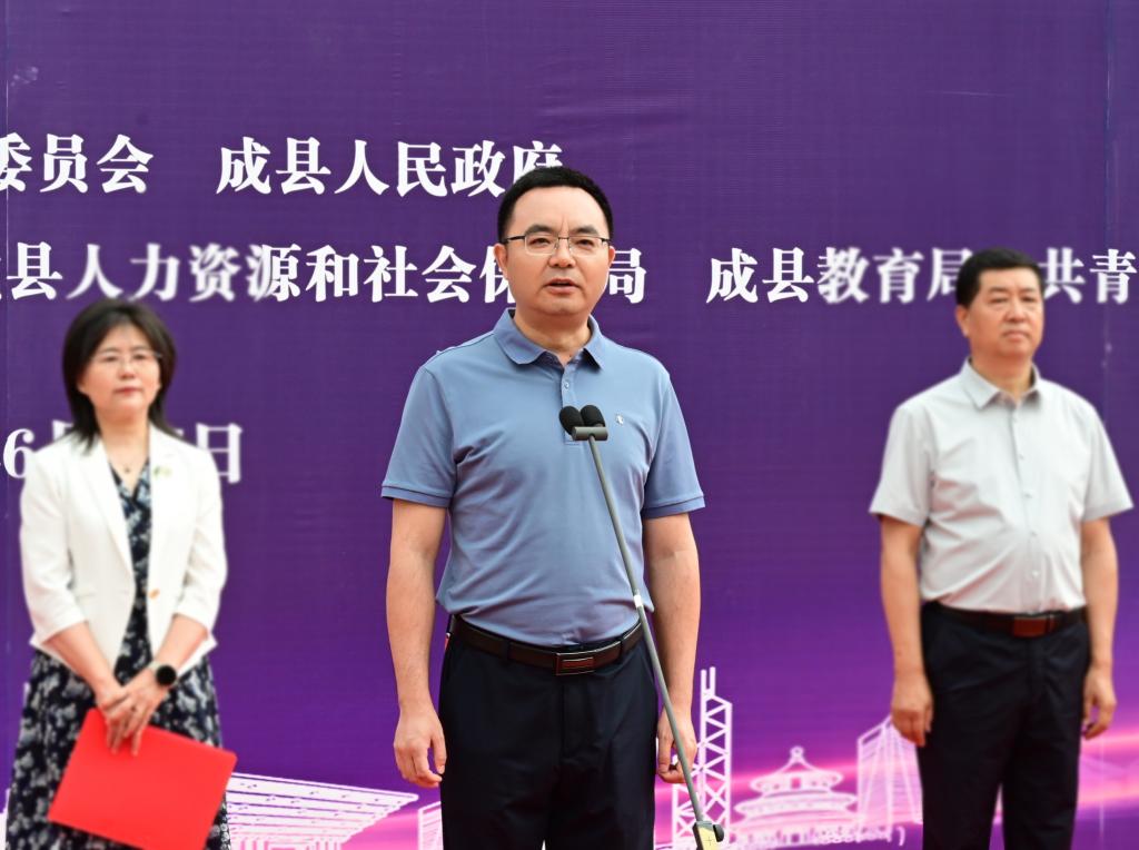 赵彦凯宣布:成县2024年高校毕业生暨青年人才就业服务专场招聘会开幕。