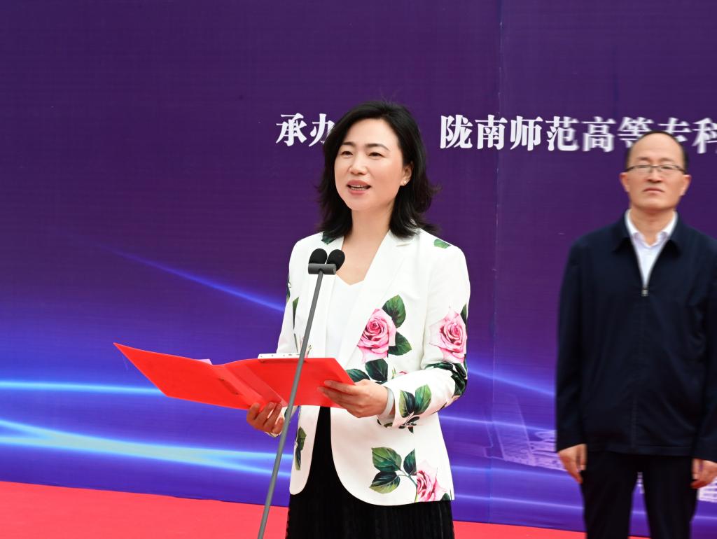 开幕式上,李艳红代表学校全体师生员工向莅临本次招聘会的各位领导、各位嘉宾、企业代表表示热烈的欢迎!向成县县委、县政府多年来对学校的大力支持表示衷心的感谢!她指出,本次招聘会,是校地合作的典范,更是城校共生的见证。学校始终坚持立德树人根本任务,坚持以人才培养为中心工作,不断加强内涵建设,提升人才培养质量,致力于为陇南及周边地区培养“下得去、用得上、留得住”的高素质应用型人才,在校地融合、校企合作中实现地方高校的高质量发展。她希望通过本次专场招聘会,为高校毕业生和地方企业搭建一个相互了解、直接对话的平台,在进一步拓宽高校毕业生就业渠道的同时,也能够为地方企业培养输送更多的应用型人才。