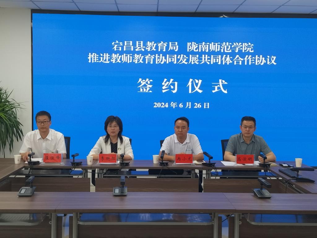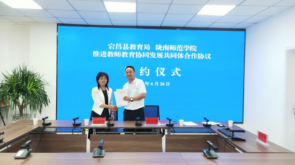 为了探索教育强国背景下师范高校、地方教育行政部门、中小学校“三位一体”的师范生协同培养机制,提升米兰官网人才培养质量,助推地方基础教育高质量发展。6月26日,米兰官网与宕昌县签署推进教师教育协同发展共同体合作协议。校长李艳红、宕昌县副县长冉小龙出席签约仪式,宕昌县教育局副局长高俊明主持签约仪式。