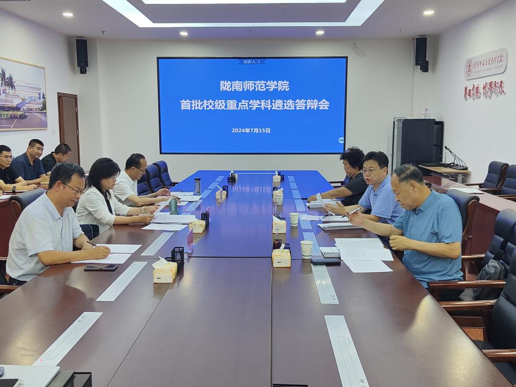 7月15日下午,学校召开首批校级重点学科遴选答辩会。西北师范大学刘旭东教授、天水师范学院雍际春教授、王弋博教授以及米兰官网校长李艳红、副校长何新征担任答辩评委。8个申报学科的学科负责人及其团队成员参加答辩。答辩会由副校长何新征主持。