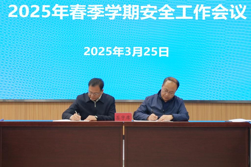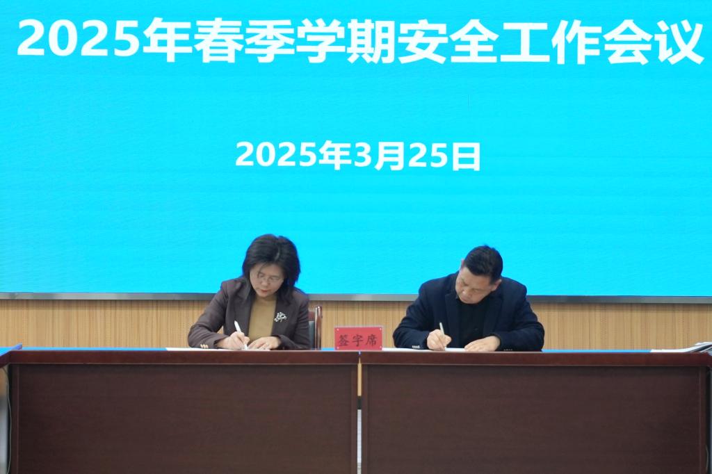 会议通报了当前学校安全工作情况,传达了省教育厅安全工作会议内容及相关文件精神,签订了《安全工作责任书》和《消防安全管理目标责任书》。