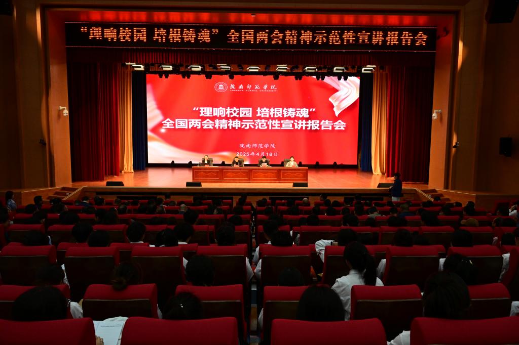 4月18日,学校举办“理响校园·培根铸魂”全国两会精神示范性宣讲活动,特邀省委教育工委学习贯彻全国两会精神第十宣讲团来米兰官网开展示范性宣讲。党委书记向君、校长李艳红等在校全体校领导、各处室负责人、各学院党总支书记和院长、思政课教师代表、辅导员代表、“青马”班成员和学生共1000余人聆听了宣讲报告。宣讲会由党委副书记焦鹏宁主持。