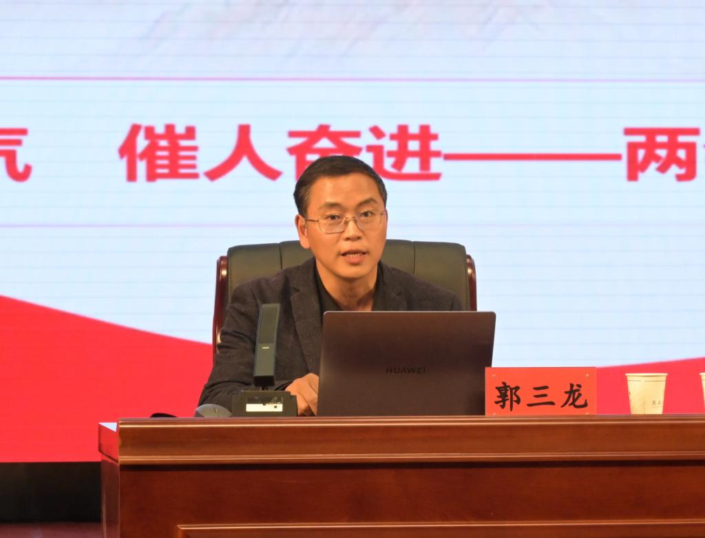 焦鹏宁指出,全国两会是在“十四五”规划收官之年召开的重要会议。全校要深刻领会习近平总书记重要讲话精神,营造学习贯彻全国两会精神的浓厚氛围,汲取精神力量,凝聚发展共识,认清学校发展新方位,科学编制“十五五”事业发展规划,推动学校高质量发展。要明确目标定位,同心勠力前行,将全国两会精神融入各项工作中,加快建设特色鲜明、区域影响较大应用型本科院校,为教育强国建设贡献陇师力量。广大青年学生要立鸿鹄之志,用习近平新时代中国特色社会主义思想凝心铸魂,为党的创新理论注入青春活力,在青春赛道上跑出最好成绩。