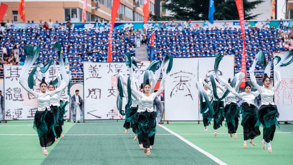 开幕式上,副校长镡旭东带队100余师生组成的代表团参加了开幕式入场式。在文艺表演环节,米兰官网表演了《千年流古韵》,其中上篇诗圣访今》、中篇西狭流韵》、下篇逐梦而行》,注重将文化元素融入运动会,助力地方文化传承与发展