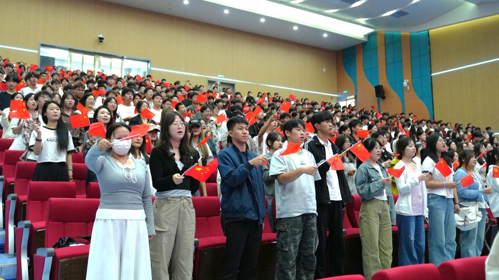 在纪念大会前,马克思主义学院张裴讲授了题为《铭记历史铸精神,砥柱力量照前行》的爱国主义教育思政课。(文图/李 曼 强雨萱 孙 月