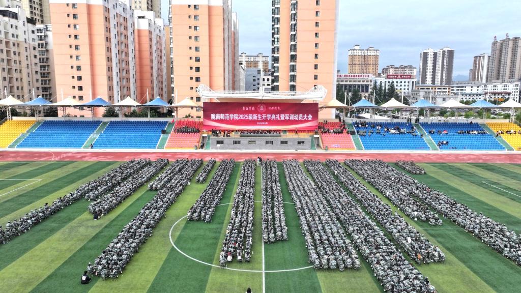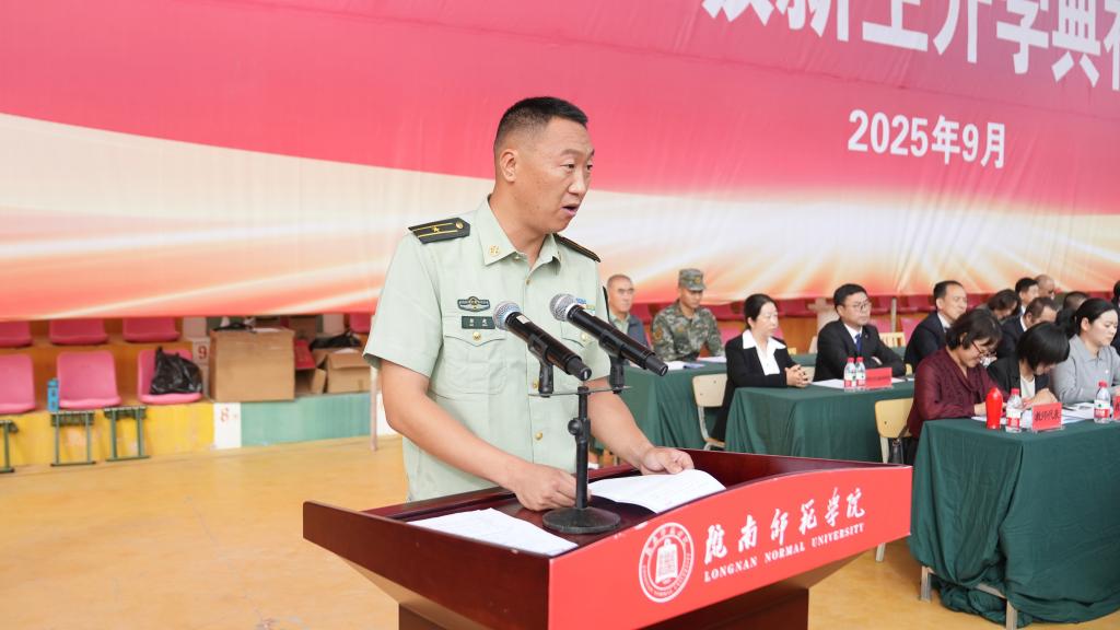 9月7日上午,学校举行2025级新生开学典礼暨军训动员大会。党委书记向君,校长李艳红,纪委书记、监察专员郭省军,副校长何新征,党委委员李杰,武警陇南支队执勤一大队政治教导员郭超,学校相关处室负责人,各学院党总支书记、院长、分管领导,2025级新生辅导员、班主任及全体新生参加了大会。大会由副校长李开明主持。