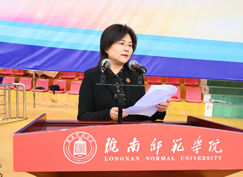 最后,李艳红作了总结讲话。她代表学校向承接此次军训任务的武警陇南支队全体官兵表示崇高敬意!向精心组织本次军训的相关部门和承担军训任务的教官们表示衷心的感谢!向参加并圆满完成军训任务的2025级同学们表示热烈的祝贺!她指出,14天的军训是新生身体与意志的双重跋涉、精神与思想的深层洗礼,同学们在训练中服从命令、听从指挥,砥砺了顽强意志、铸就了纪律观念、凝聚了团队精神、厚植了爱国情怀,以良好表现圆满完成任务。她向同学们提出四点希望和要求:一是坚定理想信念,胸怀家国天下,将军训中的爱国热情转化为刻苦学习、报效祖国的实际行动,在国家发展中实现个人价值;二是勤学善思笃行,追求真知灼见,尽快适应大学学习节奏,培养独立思考能力,注重知行合一,将理论转化为解决实际问题的能力;三是锤炼意志品质,勇于面对挑战,以乐观坚韧的心态克服大学学习生活中的困难,在战胜自我中成长;四是提升综合素养,实现全面发展,坚守品德底线,做思想独立、热爱集体的人,成长为德才兼备的优秀人才。她希望同学们珍惜大学时光,秉承“坚苦奋达”的校训精神,砥砺前行,努力成长为可堪大用、能担重任的栋梁之材,为实现中华民族伟大复兴贡献智慧和力量。(文图/李 曼  孙 月