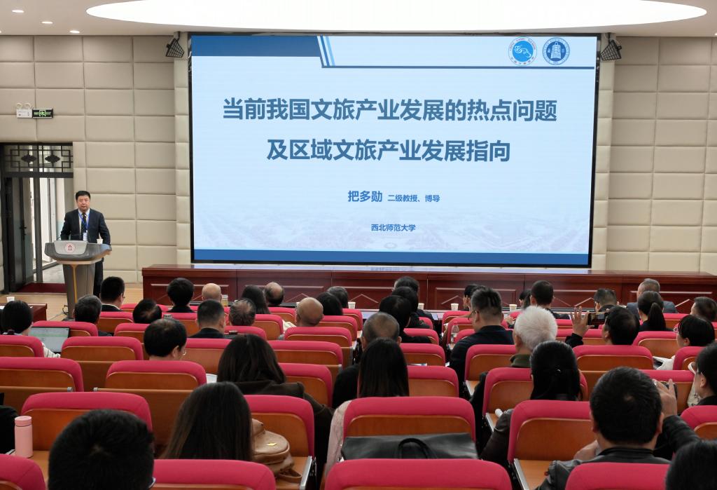 开幕式后,西北师范大学二级教授、博士生导师把多勋和湖北工业职业技术学院李军教授分别作了题为“当前我国文旅产业发展的热点问题与区域文旅发展指向”和“校地共建产业学院,引领县域特色产业高质量发展”的学术报告。