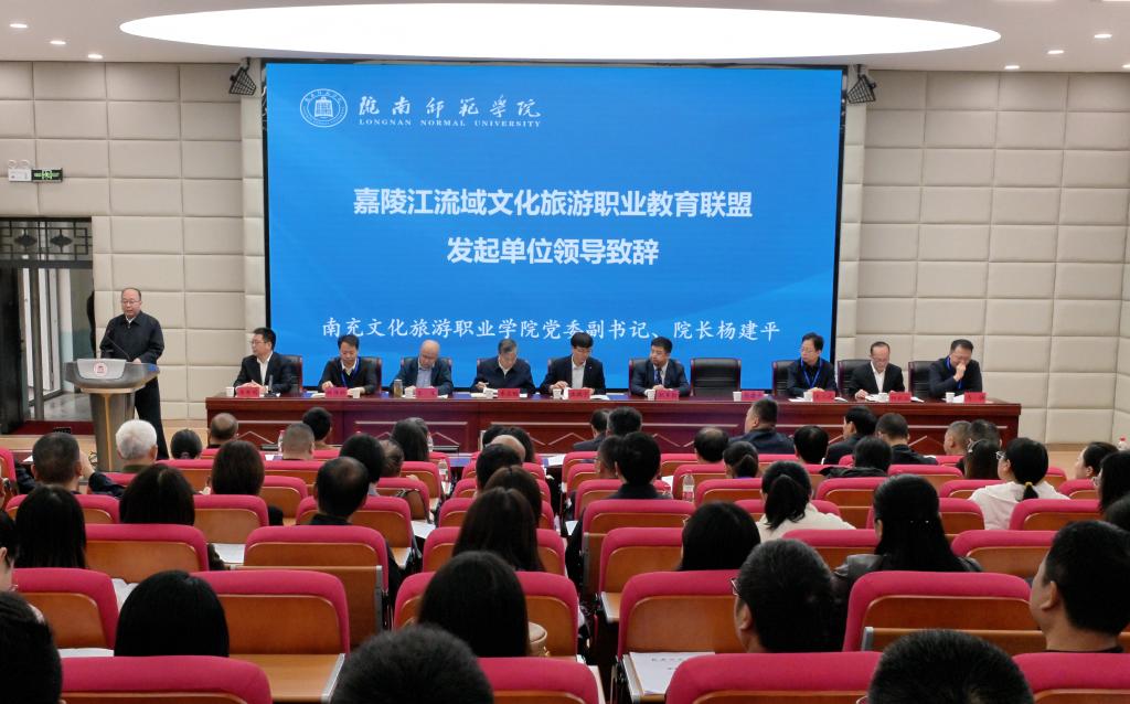 嘉陵江流域文化旅游职业教育联盟发起单位,南充文化旅游职业学院党委副书记、院长杨建平在致辞中介绍了南充文化旅游职业学院和嘉陵江流域文化旅游职业教育联盟的基本情况,提出了“精准供需育英才、强强联合作贡献、优化机制铸样板”的工作期望。