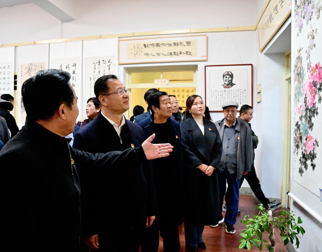 开幕式上,向君代表学校向全体退休教师致以节日的诚挚问候,并对社区党支部的支持表示衷心感谢。他指出,退休教职工是学校事业的开创与建设者,是学校发展的宝贵财富,为学校改革发展做出了积极贡献。此次展览以笔墨为媒,既展现了大家深厚的艺术造诣与积极乐观的精神风貌,更承载着对学校的深厚情感与美好祝愿。他要求,全校上下要自觉把退休教职工工作作为组织工作的重要组成,以满腔热情、深厚感情做好服务工作。要在思想上关心老同志,发挥好省级“六好”离退休干部示范党支部的引领作用,积极引导老同志用党的最新理论成果武装头脑,保持政治坚定、思想常新、理想永存。