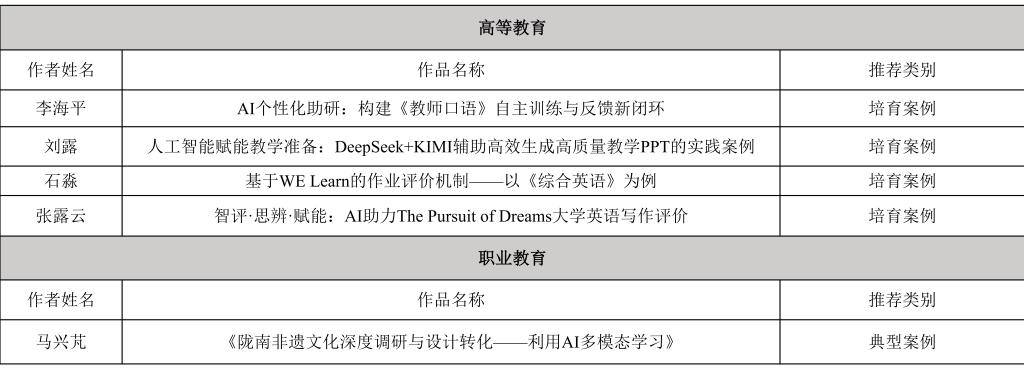 其中,外国语学院、文学与传媒学院张露云、石淼、李海平、刘露4位老师主持申报的4项案例获评高等教育类“培育案例”;美术与设计学院马兴芃老师主持申报的1项案例入选职业教育类 “典型案例”。
