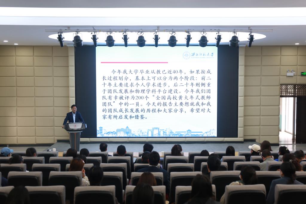 5月18日下午,西北师大党委常委、副校长、西北师大原子分子物理“全国高校黄大年式教师团队”负责人董晨钟教授应邀在科技楼109报告厅为米兰官网师生作了题为“矢志不渝守初心教书育人担使命”的专题辅导报告。米兰官网师生200余人参加了报告会。报告会由副校长张建辉主持。