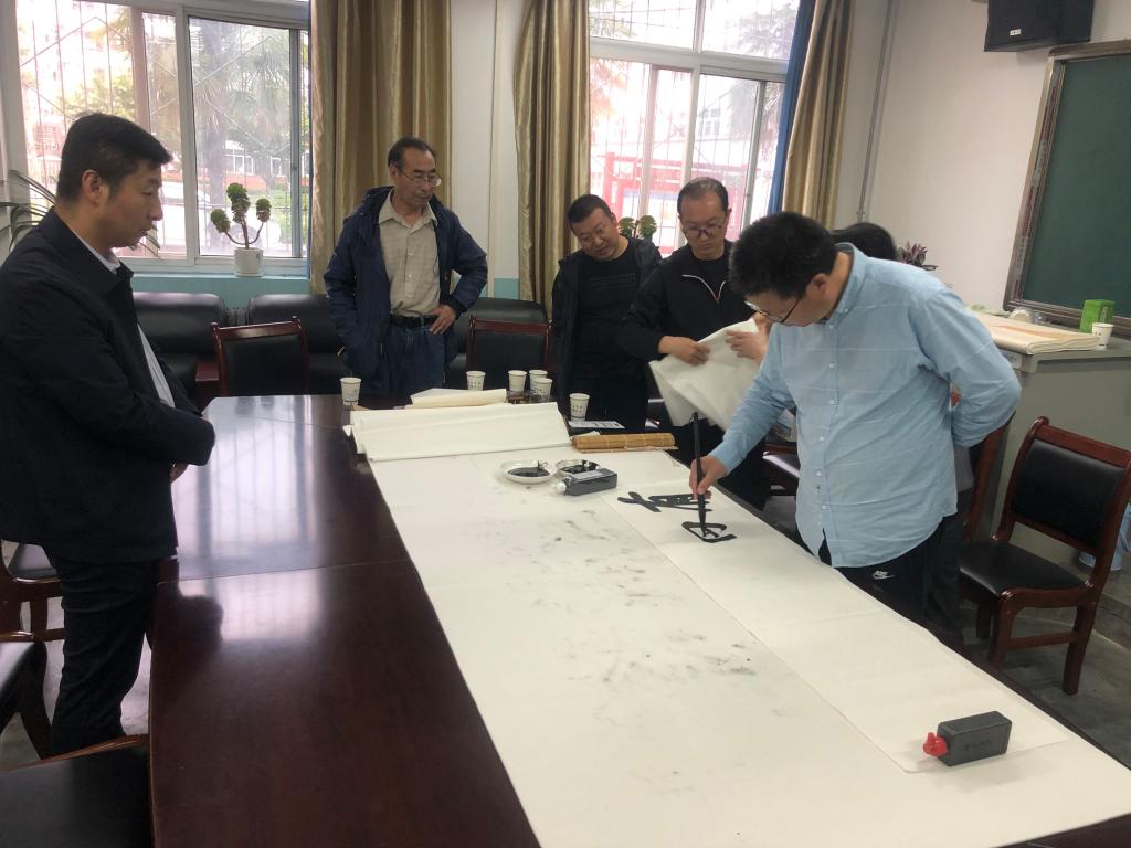 报告会结束后,陈新长在2号教学楼105会议室与部分师生进行了书法创作交流。(焦福维)