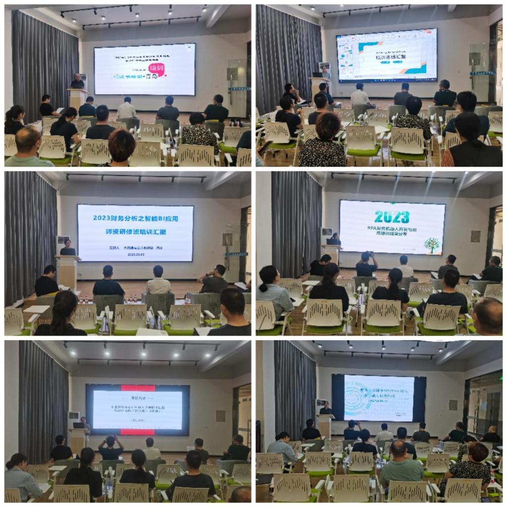 学院教师李平荣、王丽君对参加的2023年1+X电子商务数据分析职业技能等级证书书证融通研修班、淘宝教育直播电商师资研修班的学习情况进行了总结汇报,大数据与会计教研室教师马瑞真、周凌、王美玲、潘菊霞分别分享了财务分析之智能BI应用师资研修、RPA财务机器人开发与应用研修、企业财务与会计机器人应用职业技能等级证书教学能力提升师资研修、财务大数据分析Python课程教学能力提升项目培训的成果。接着,在暑期参加2023年全省职业院校教学能力比赛获得二等奖的团队负责人贺军忠进行经验交流,带领指导学生团队参加电商直播国赛指导教师高鹏介绍了参赛情况,以及收获与不足。