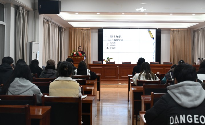 11月16日晚,应学校新闻中心邀请,文学与传媒学院高建国老师作了题为《新闻稿件的写作》的讲座。