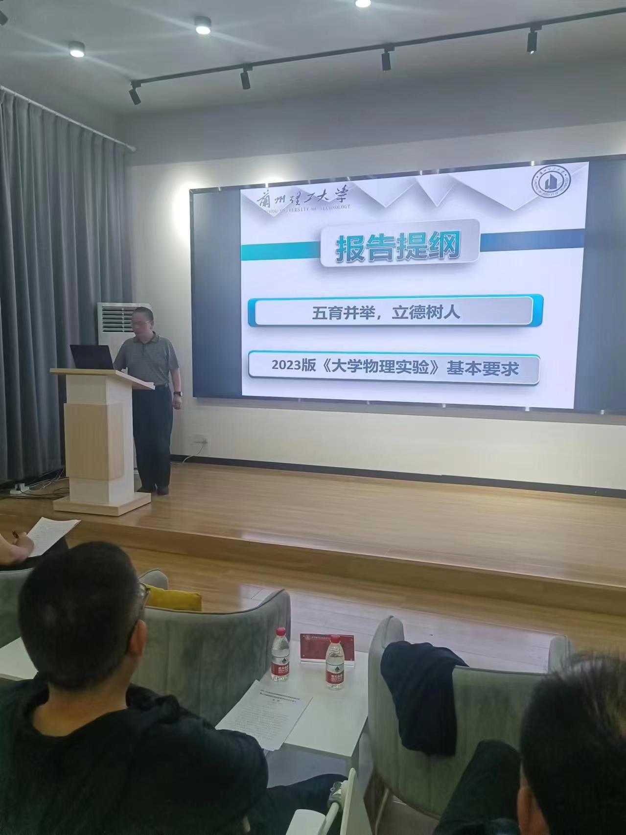 戴剑锋教授首先从教育三问说起,即:为谁培养人、培养什么样的人、如何培养人,强调大学教育要五育并举,七情和谐。随后他对2023年版《大学物理实验》基本要求的五个方面,50个实验进行了详细解读。