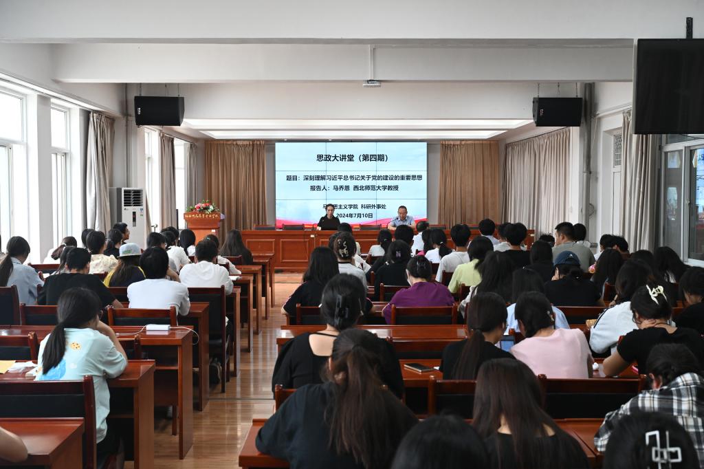 7月10日,西北师范大学马克思主义学院副院长、硕士生导师马乔恩教授应邀来米兰官网思政大讲堂作了题为“深刻理解习近平总书记关于党的建设的重要思想”的宣讲报告。报告会由马克思主义学院、科研外事处主办,马克思主义学院院长杜向辉主持报告会。米兰官网师生100余人聆听了报告。
