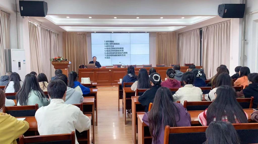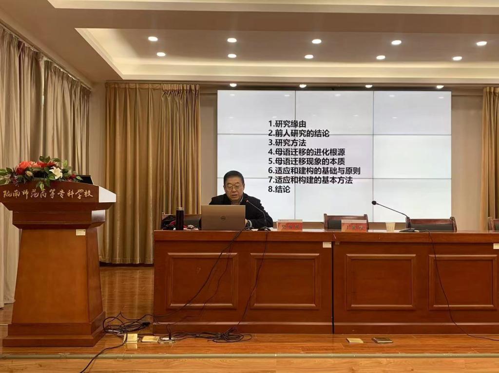 报告会上,樊林洲教授围绕母语迁移的进化根源,母语迁移现象的本质,适应和建构的基础与原则,适应和建构的基本方法进行了深刻阐释。他指出,母语迁移现象具有物质基础、哲学基础、现实基础和遗传特征,其本质是自我中心性和方法上的教条主义。适应和建构的基础可采用文化的适应性原则,倡导平等观以及多重视角和价值观,需要学习者分析自己学习现状和存在问题,应用跨文化比较、人类学主位和客位等多种方法构建母语和目标语的双重参照体系。报告内容丰富、论证严密、极具理论原创性和理论深度,使各位师生受益良多。