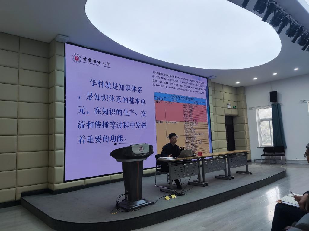 董志峰教授围绕学科、专业内涵关系;学科专业建设的国家政策;学科专业建设的基本内容;甘肃政法大学学科专业建设方案等四个方面来展开。董志峰教授首先在厘清学科、专业内涵与关系的基础上,阐释了学科专业建设的不同和内在联系。结合当前学科专业调整的背景,深入剖析了学科专业建设的政策导向,提出了学科专业建设的重点内容。结合甘肃政法大学学科专业建设规划,系统解析了学科专业建设的基本原则、重点内容和工作举措。