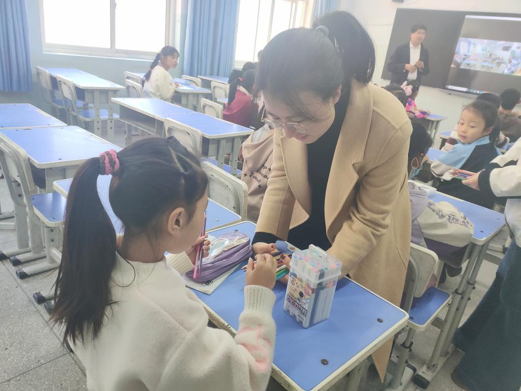 在本次活动中,项目组通过领导座谈与随堂老师访谈相结合的方式详细了解学校师资结构,美术、音乐等课程开设,“互联网+支教”专递课堂教学运行等情况。“云端教师”来到线下课堂,和孩子们及随堂老师亲密接触、深入交流,并组织同学们开展了精心准备的音乐、美术专题线下课。项目组还为孩子们带去了青岛大学校友企业捐赠的儿童美术用具。