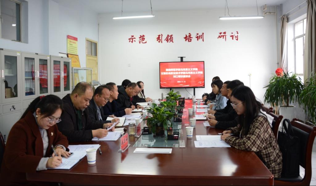 为了落实甘肃省委教育工委关于高校马克思主义学院结对帮扶工作要求,切实提升思政课教学质量,11月12日下午,ac米兰官网中文网站马克思主义学院与甘肃机电职业技术学院马克思主义学院开展帮扶共建座谈会,并就《习近平新时代中国特色社会主义思想概论》课程进行集体备课。会议由米兰官网马克思主义学院院长杜向辉主持。