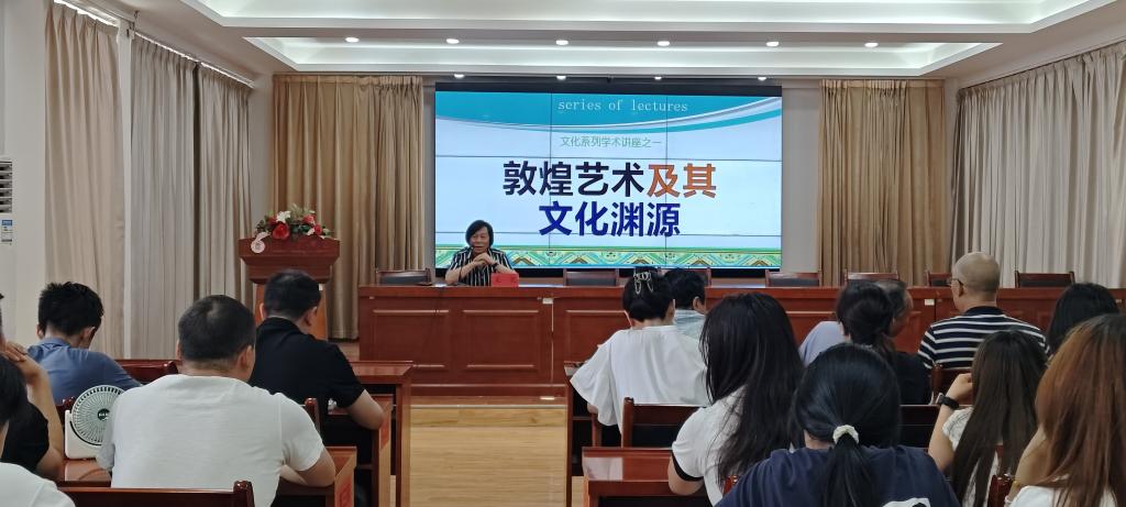 报告会上,文化教授围绕敦煌的名称与建置沿革、艺术产生的历史文化背景、震惊世界的发现与敦煌学的问世,以及石窟艺术的内容与风格特征等方面展开讲解,系统剖析敦煌艺术的文化渊源。还详细分析了石窟壁画的内容题材和风格演变,展现了丝绸之路上多元文化交融的艺术特色。