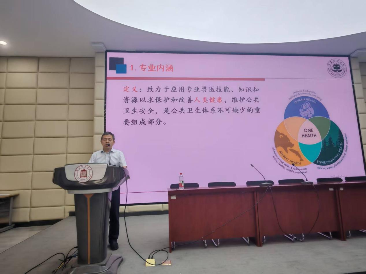 报告会上,苟慧天教授以“新质生产力”为切入点,系统阐述了当前农业发展新趋势、人兽共患病防控新态势以及细菌耐药性研究新进展。基于“人病兽防,关口前移”的防控理念,苟教授深入分析了兽医公共卫生领域的专业课程体系建设,并从科研促进学科发展、服务社会需求等维度,提出了具有前瞻性的发展思路。