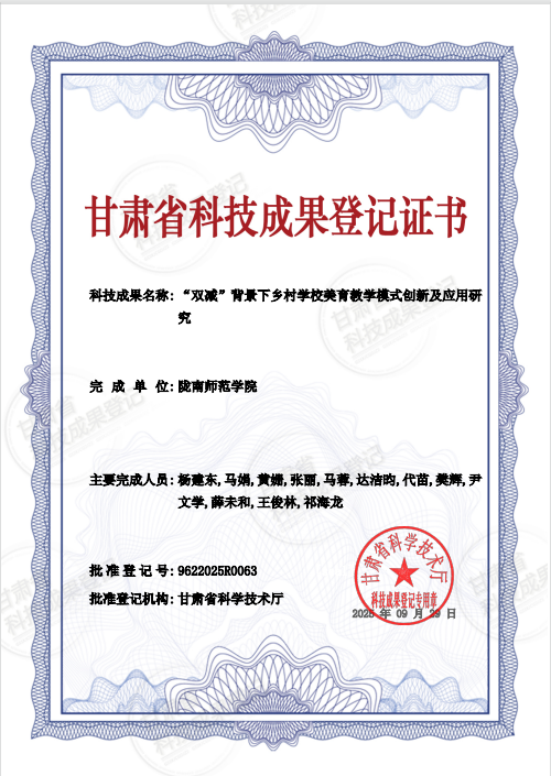 近日,米兰官网杨建东教授主持的甘肃省科技计划项目“‘双减’背景下乡村学校美育教学模式创新及应用研究(项目编号:22JR4ZK114)”顺利通过结题验收并完成成果登记。