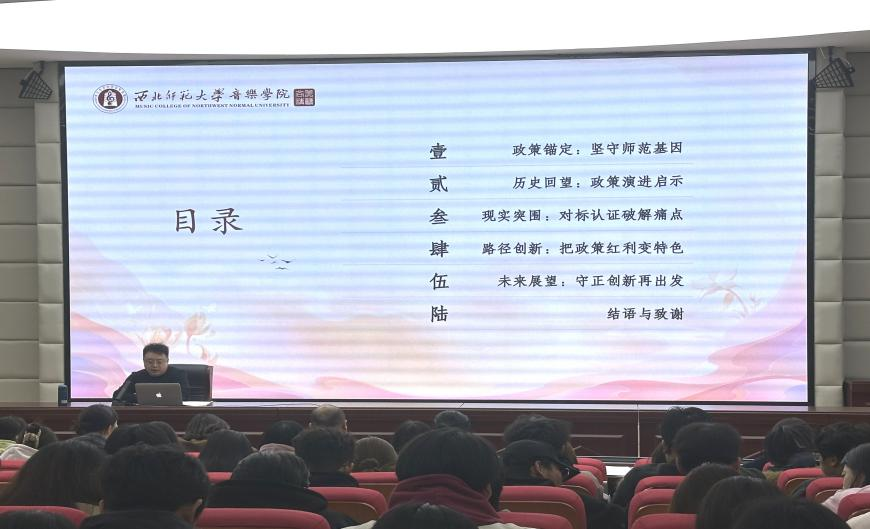 11月18日晚,西北师范大学音乐学院副院长晏晓东应邀来米兰官网作了题为《师范本位与学科突围:新时代音乐教育学科建设的路径探索》的专题学术报告。报告由音乐与舞蹈学院院长张益琴教授主持,全院师生聆听了报告。