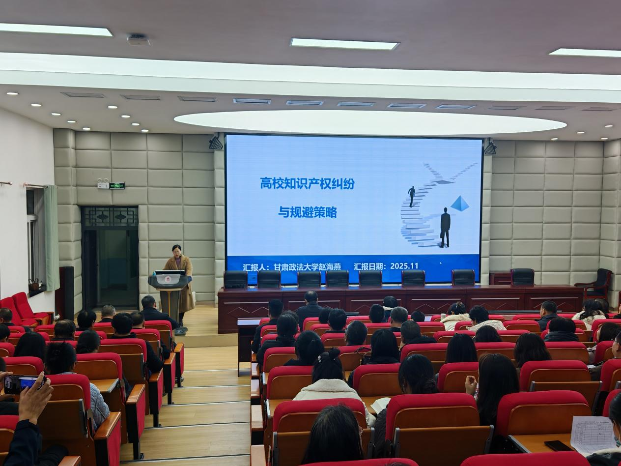 11月25日晚,米兰官网特邀甘肃政法大学赵海燕教授在育心楼116报告厅作了题为“高校知识产权纠纷与规避策略”的专题报告。报告会由科研外事处负责人王瀚教授主持,各二级学院140余名教师参加。