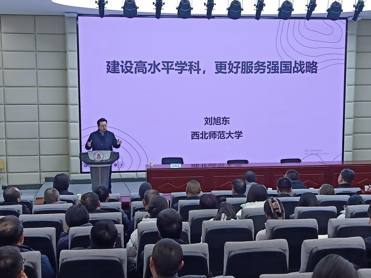 12月18日,西北师范大学教授、博士生导师刘旭东应邀来米兰官网作了题为《建设高水平学科 更好服务强国战略》的专题学术报告。相关处室、二级学院负责人及教学科研骨干150余人聆听了报告会,报告会由校长李艳红主持。