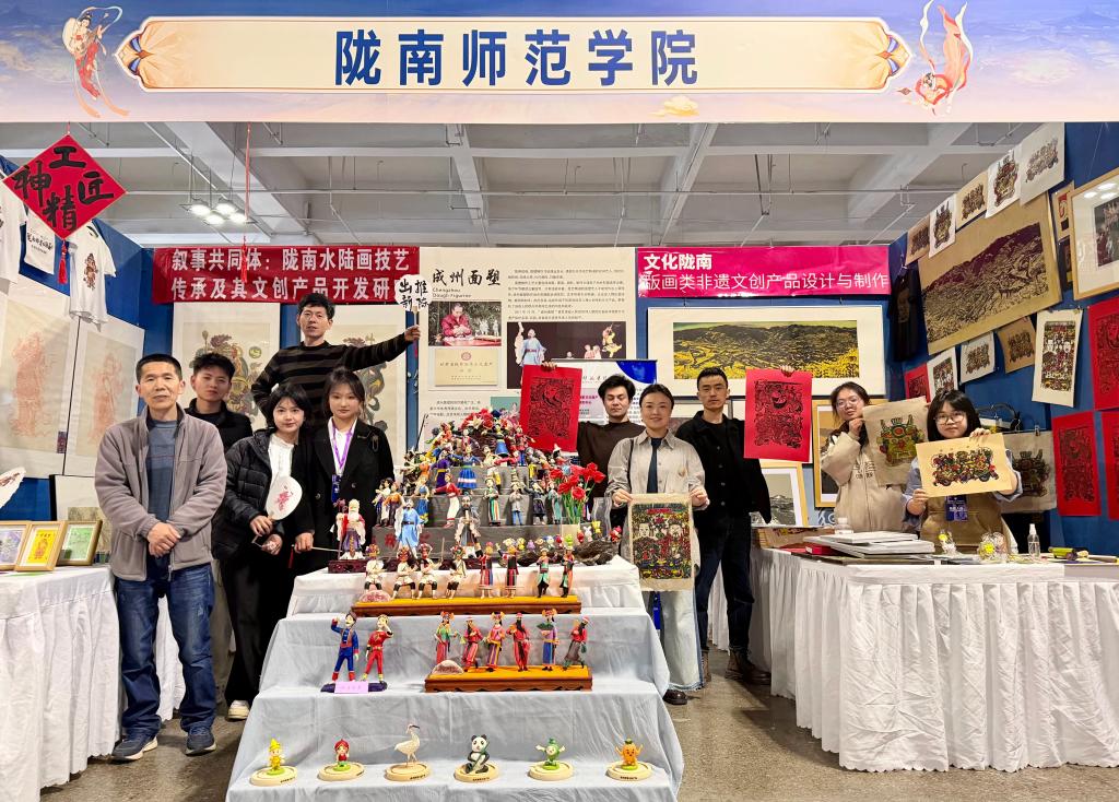其中,非遗创新作品类《文化陇南—— 版画类非遗文创产品设计与制作荣获非遗创新作品(高职及本科组)一等奖;《民族团结在我心(成州面塑)》《叙事共同体:陇南水陆画技艺传承及其文创产品开发研究》两件作品,分获非遗创新作品(高职及本科组)三等奖。非遗教学成果类《文化赋能:陇南版画技艺的活态传承与教学实践》获非遗教学成果(高职及本科组)三等奖。