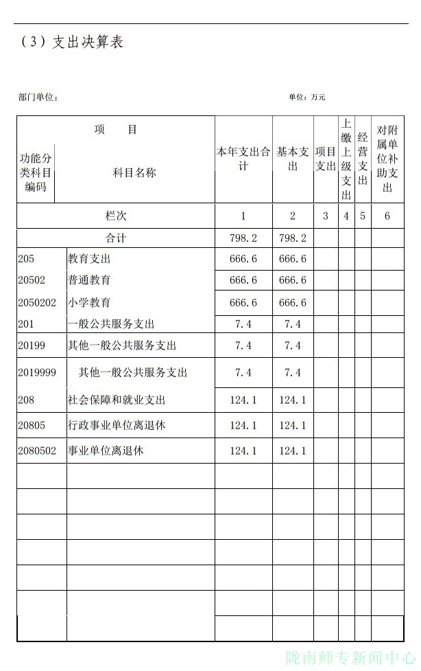 2015年,决算支出790.7万元,与上年度比较增加255.9万元,同比增长47.8%。按支出经济分类:基本支出790.7万元,占100%;项目支出0万元,占0%。按支出功能分类:教育支出666.6元,占84.3%;社会保障和就业支出124.1万元,占15.7%;