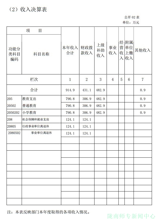 2015年,决算收入915万元,与上年度比较增加388万元,同比增长73.6 %。其中:财政拨款收入431万元,占47.2%;上级补助收入483万元,占52.7%;事业收入0万元,占0 %;其他收入1万元,占0.1%。