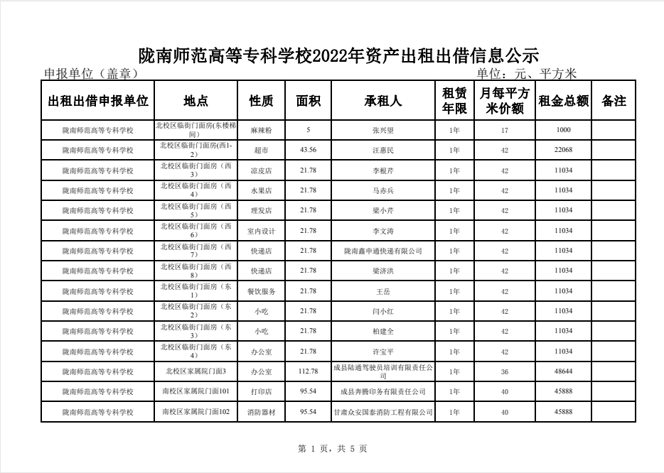上一条:陇南师范高等专科学校2022年资产出租出借信息公示