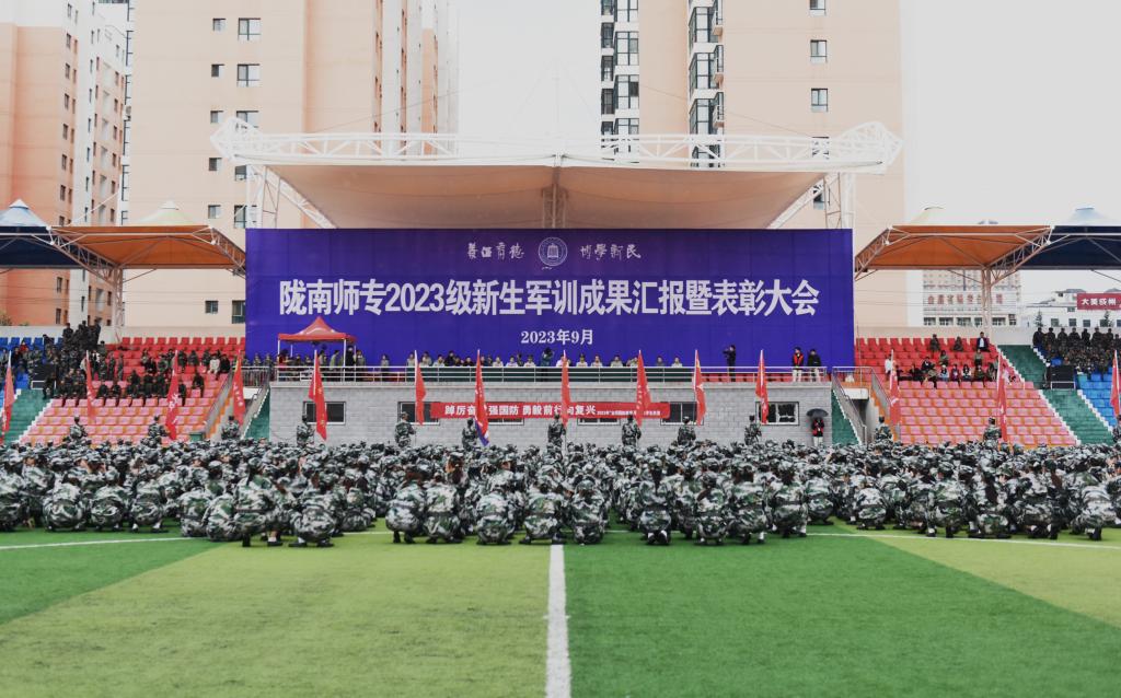 9月22日,学校召开了2023级学生军训总结暨表彰大会。副校长任永峰,纪委书记、监察专员镡旭东,武警陇南支队副参谋长彭卫星,武警陇南支队教导队队长刘衍国出席大会。承担军训任务的武警陇南支队教官、各学院党总支书记及分管学生工作领导,相关处室的负责人出席大会,各学院辅导员以及2023级全体学生参加了大会。大会由学生处处长李晓江主持。