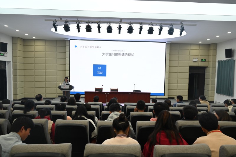 高娟通过典型案例,从网络舆情、大学生网络舆情现状、应该如何应对、相关法律法规四个方面进行了讲解,分析了大学生网络舆情关注的内容、大学生不良网络舆情形成的原因、不良网络舆情对大学生的影响等问题。她指出,高校应加强对网络舆情引导与管理的重视,利用新媒体建立高校网络舆情的应急处理机制,构建高校舆论宣传工作的全员化路径;加强思想政治教育,树立大学生诚信道德意识,构建和谐校园文化。