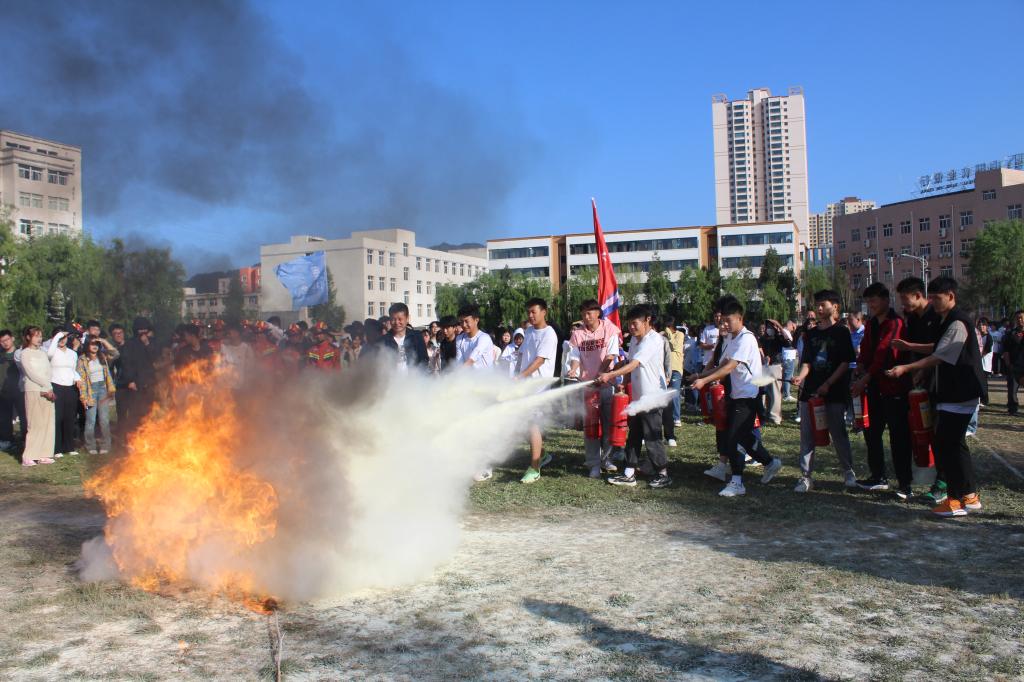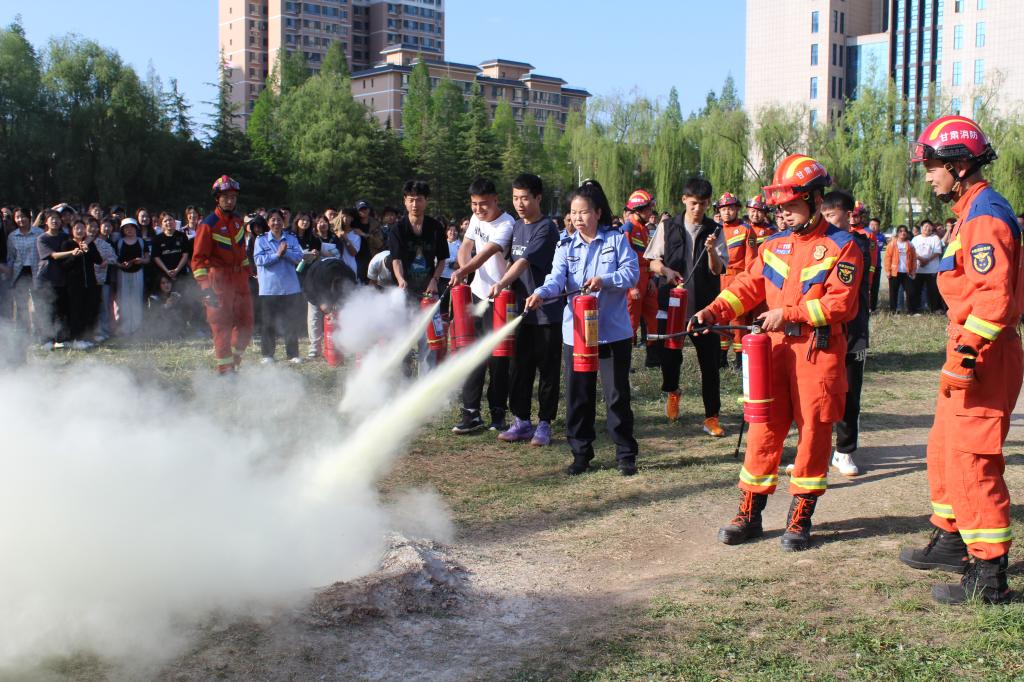 成县河东消防救援站教官示范讲解了灭火器的正确使用方法,现场教授同学们亲自使用灭火器进行灭火。在认真听讲与观摩后,学校师生也亲自体验了现场灭火过程,按照灭火步骤和方法将大火迅速扑灭。整个演练过程衔接到位、实操规范,取得了良好的实战效果。